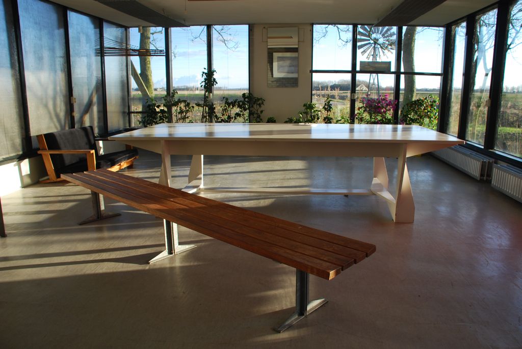makette- en meubelmakerij in de vroegere paardenstaluitlegtafelellipstafel op twee poten voor waalkenscafetafelwerkbank voor de makettebouwerlessenaar voor tekstverwerkertafel voor ed tavernetafel voor bernard colenbranderreceptietafelreceptietafel in forser formaatvergaderkamer 't nijenhuis' heino verlicht met vitrinesbibliotheektafels voor het nijenhuisburotafeltafeltje bij de vensterbanktafel uit een lang bewaarde plaat amerikaanswerktafel voor mijn moederwerktafelvast meubilair notariskantoor drachtenburotafel uit oud balkhoutladenbedstoelen voor onze kinderen en voor Metz&cobankje voor Metz & costoel uit laagjes triplexvariant op rietvelds militaire stoellattenstoelbibliotheekstoelinterieur vergaderkamer met notarisstoelenchaise longuekeukenbankjebank uit een gekregen plaat limba en rundleerkantelbank uit resten cedarstraatmeubilair alphen a/d rijnzitje aan de rijnkadeeen verbouwing in zuidwoldebankje voor de oude dagbank en werktafelschoolplein-bank wassenaarlampen voor het traphuis van Tatjanatrap getimmerd voor het huis van mijn zoonde home made keukenkast Miloleeskastexpositie italiaanse panelen groningen